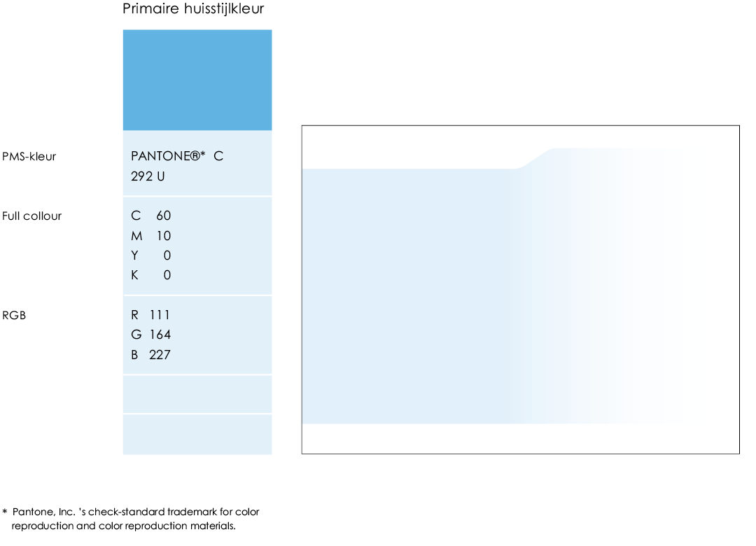 KWR Waterware® gebruikt KWR helderblauw voor de logo’s en de uitingen. De helderblauwe kleur wordt onder andere als verlooptint toegepast in achtergronden of als verloopvlak over foto’s.