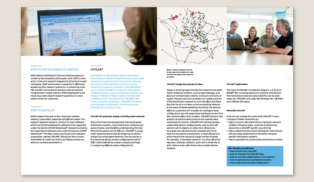 Enkele producten van KWR Waterware® hebben een eigen productbrochure. Productiebestanden van deze brochures (Engels en Nederlands) zijn te downloaden.